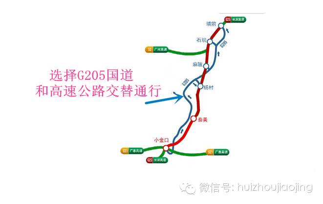 避堵方案:如遇高速公路拥堵。建议大家选择G205国道和高速公路交替通行。