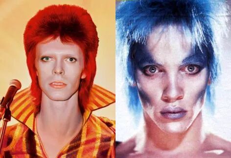 ▲鲍伊当时的形象和乔纳森片中形象的对比