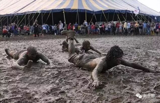 以烂泥地的环节而出名——穿上雨鞋和雨衣,在泥地里走一遭,是观看Glastonbury音乐节必须经历的体验!