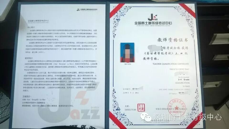6、“考级中心”仅接受中国艺术职业教育学会考级委员会颁发的爵士舞等级考试《教师资格证书》持有者,所推荐的学生考试。带学生考试须出示教师资格证(学生成绩合格者,由中国艺术职业教育学会考级委员会颁发的爵士舞等级考试按所考级别所颁发的证书)。