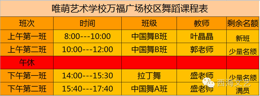 课程:艺术类美术(素描、水彩)、中国画、软笔书法、硬笔书法、中国舞、拉丁舞、爵士舞、跆拳道、