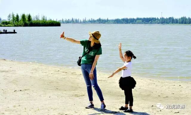 阳光、沙滩、椰子树,岸边细软的白沙,让人忍不住想脱了鞋与沙滩、湖水来一次亲密接触。这里不是马尔代夫,这里是固城湖水慢城的金沙滩。